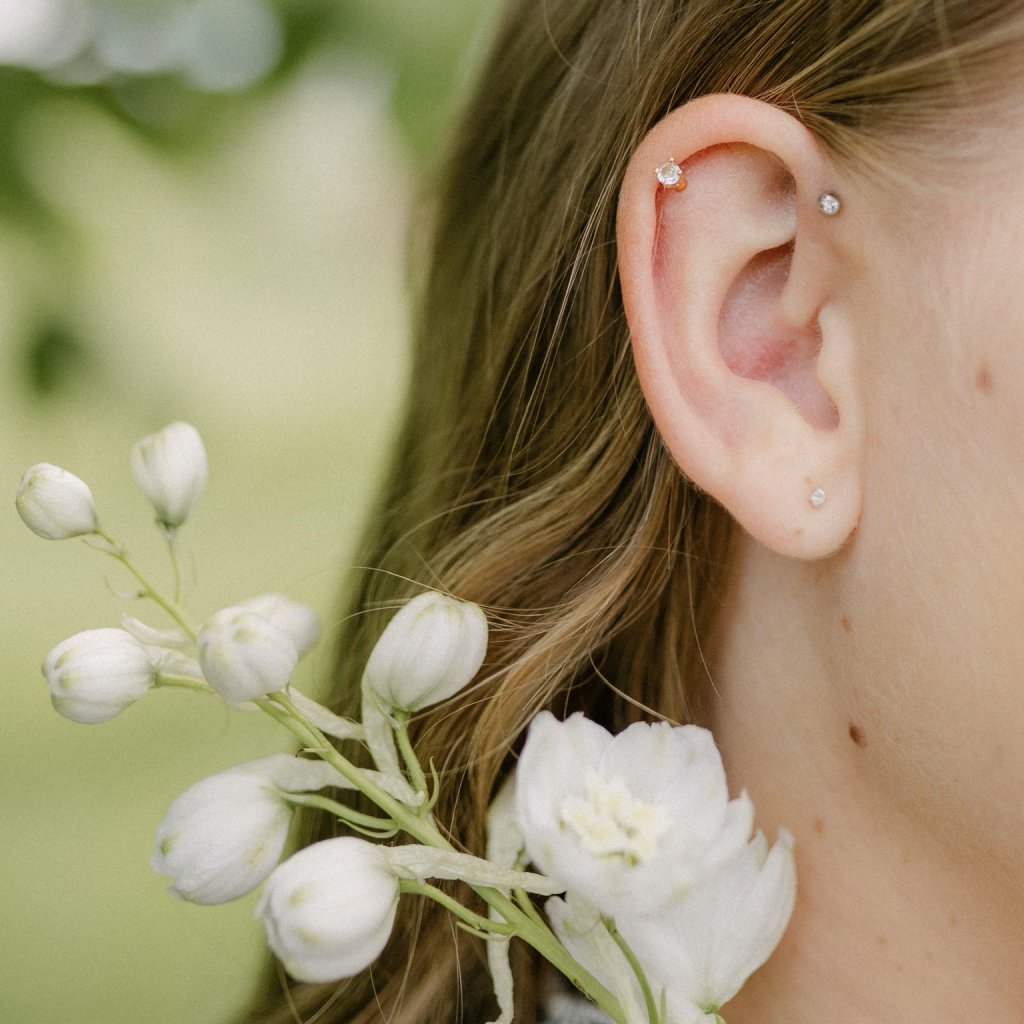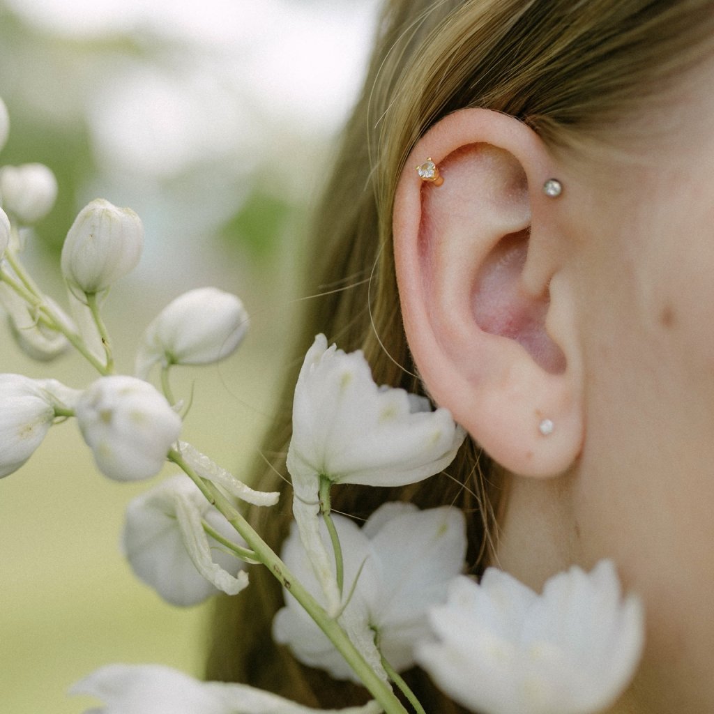 Tato minimalistická labreta s drobnými kamínky dodá tvému uchu jemný lesk a ženský šmrnc. Skvěle sedí do helixu, tragusu nebo jako decentní doplněk do ušního lalůčku.
