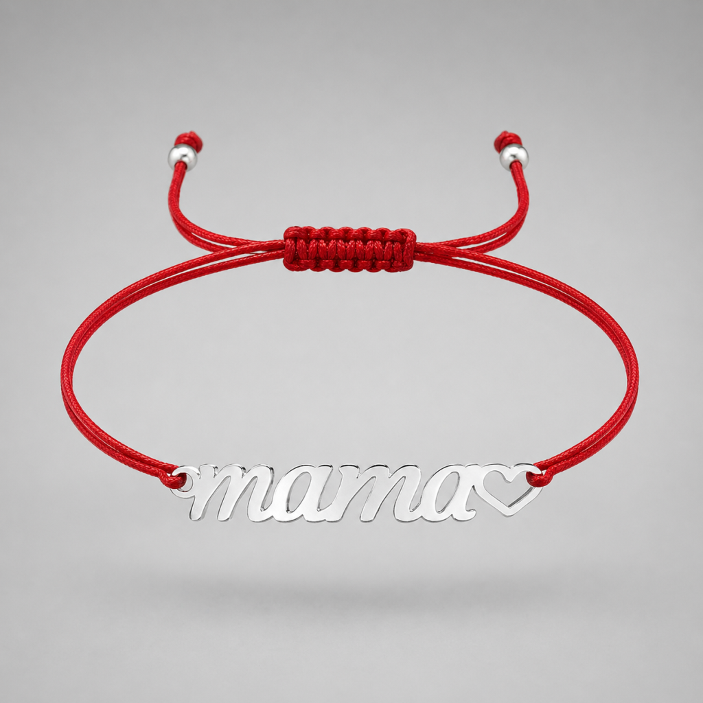 Jemný a symbolický náramek s gravírovaným srdíčkem Máma je krásným vyjádřením lásky, vděčnosti a blízkosti. Minimalistický stříbrný přívěšek ve tvaru srdce je doplněn tenkým červeným provázkem, který symbolizuje ochranu a silné pouto.