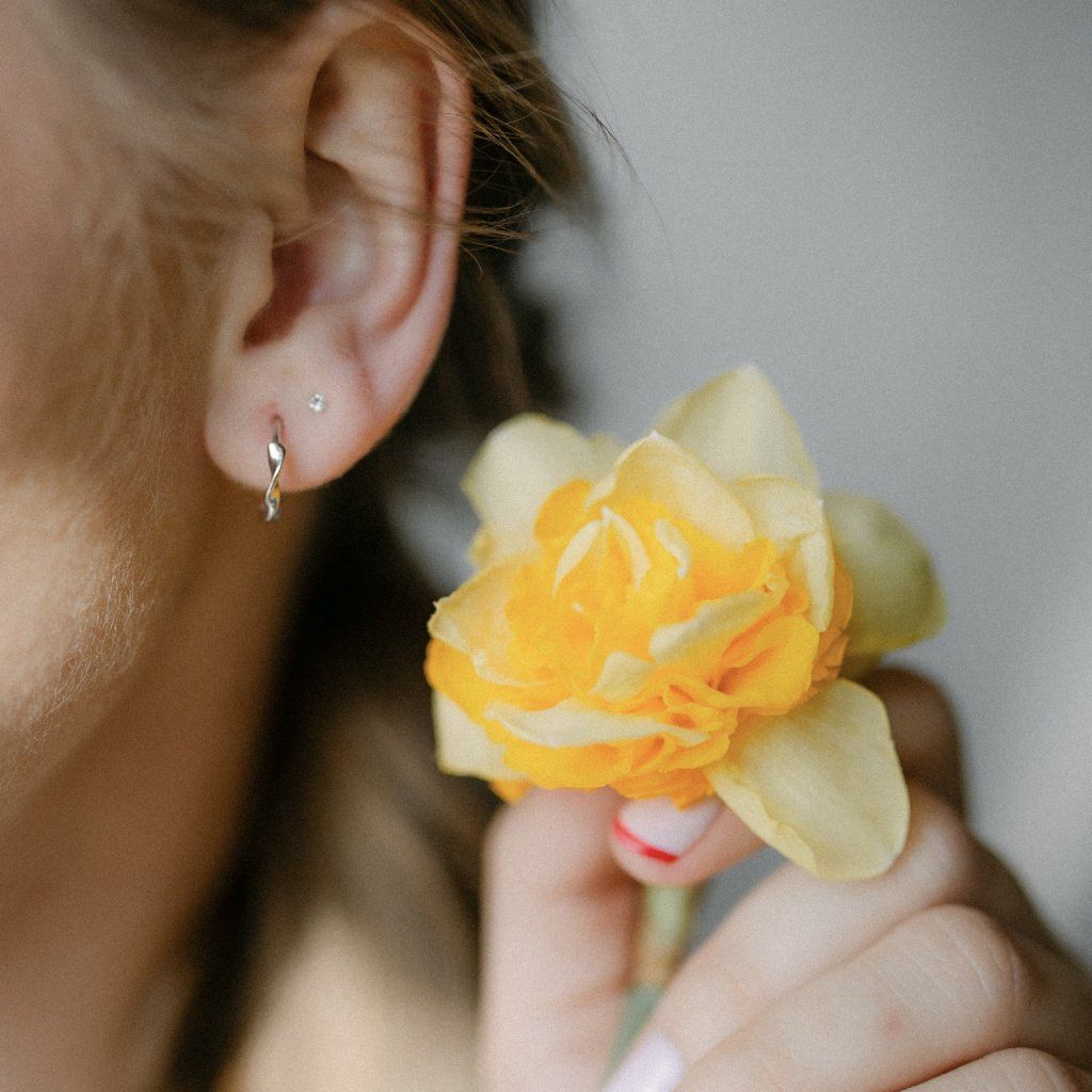 Minimalismus, který má detail. Tyto kruhové náušnice oživuje jemně točený povrch, díky kterému nepůsobí obyčejně, ale přirozeně upoutají pozornost. Při každém pohybu zachytávají světlo a vytvářejí nenápadný, elegantní lesk.