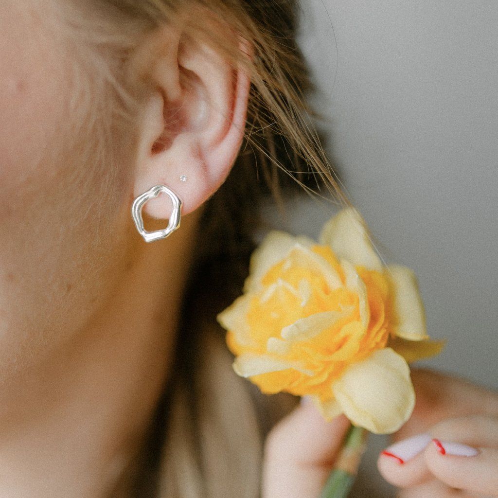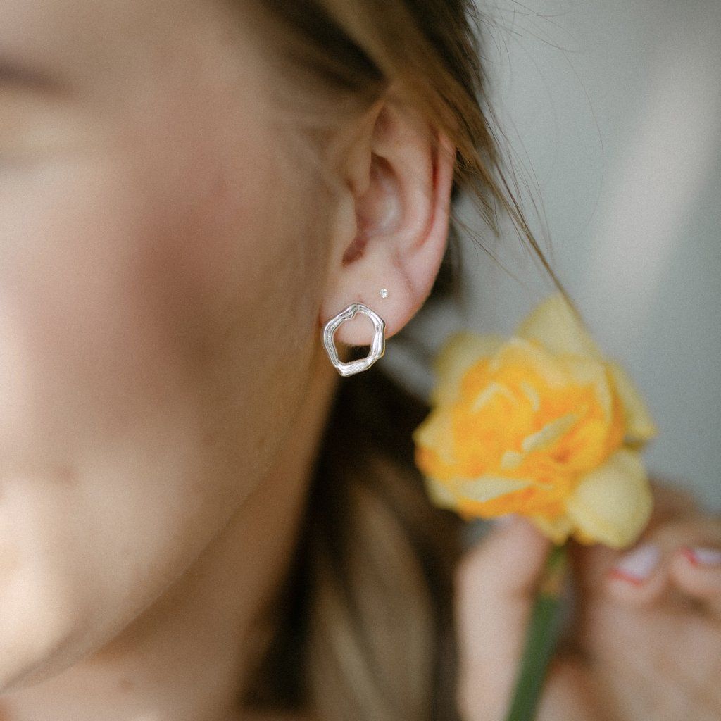Minimalistické, a přitom výrazné. Tyto náušnice vás okouzlí svým organickým tvarem – z klasického kruhu se stává jemně vlnitá, nepravidelná forma, která působí přirozeně a živě.