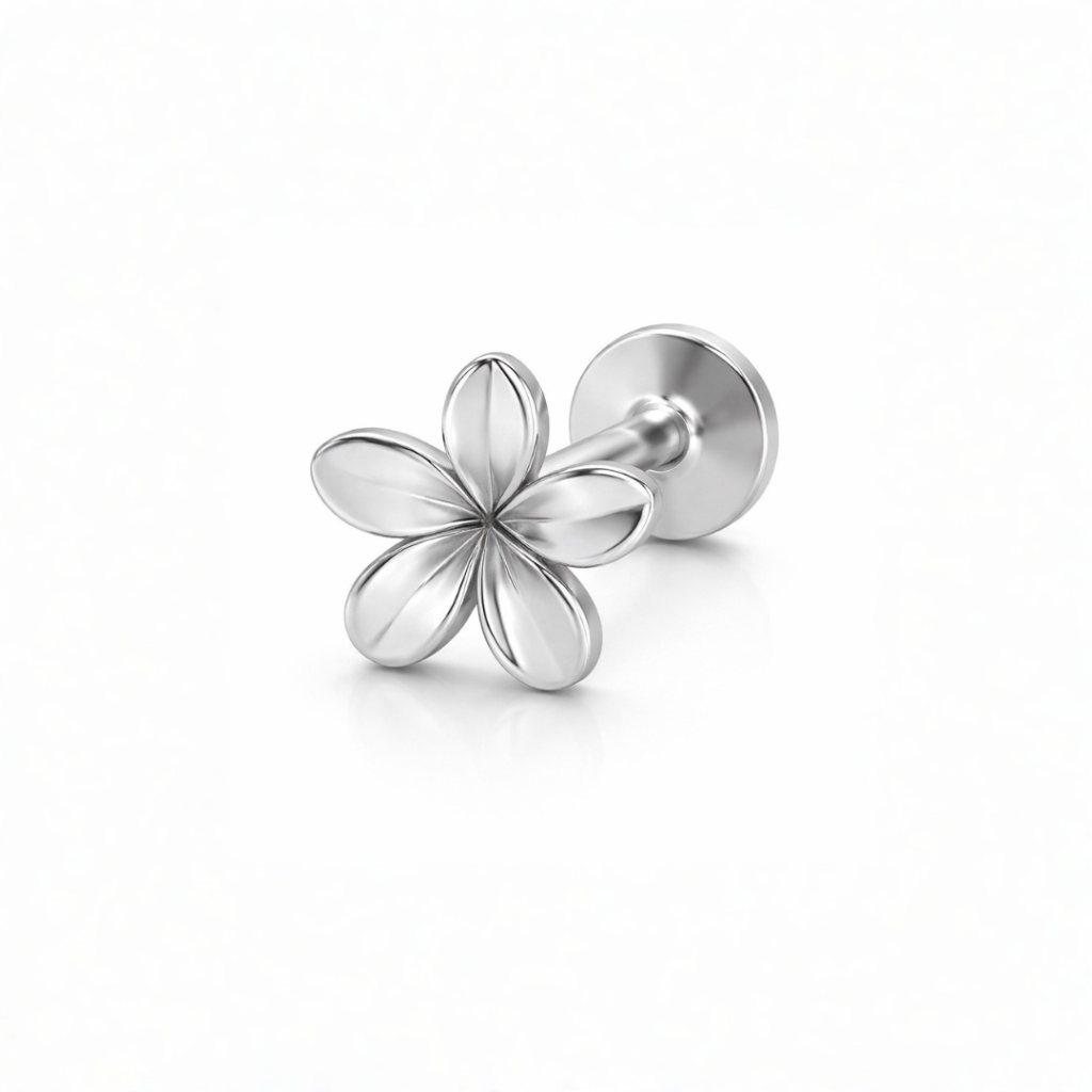 Něžná labreta ve tvaru kytičky je ideální volbou pro jemný a ženský piercing. Pohodlná, stylová a vhodná pro každodenní nošení.