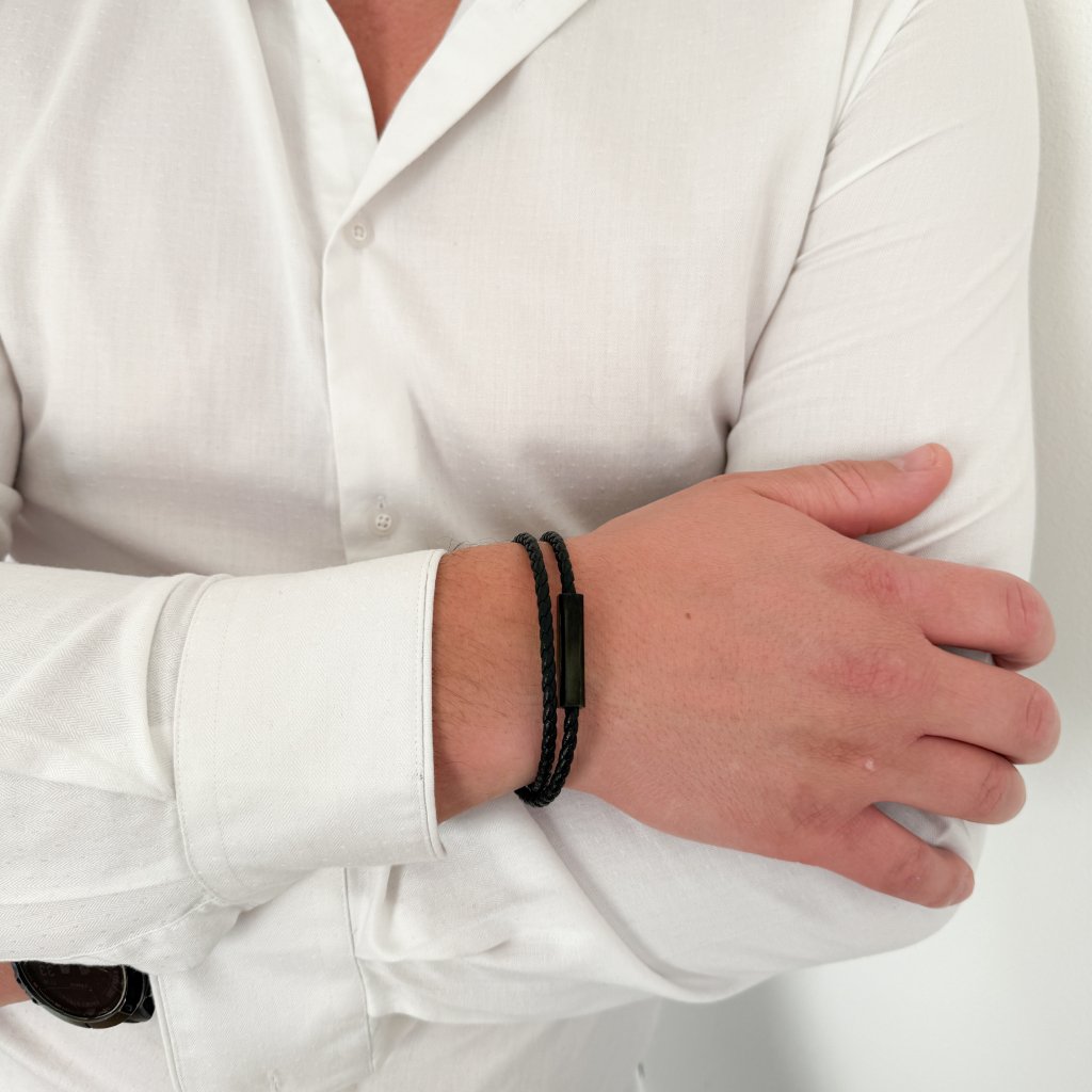 Tento pánský náramek z kvalitní pletené koženky je ideální volbou pro muže, kteří hledají stylový, ale nenápadný doplněk. Jemně pletený povrch působí uhlazeně a příjemně sedí na ruce, zatímco tmavé kovové detaily dodávají náramku moderní, lehce luxusní nádech.