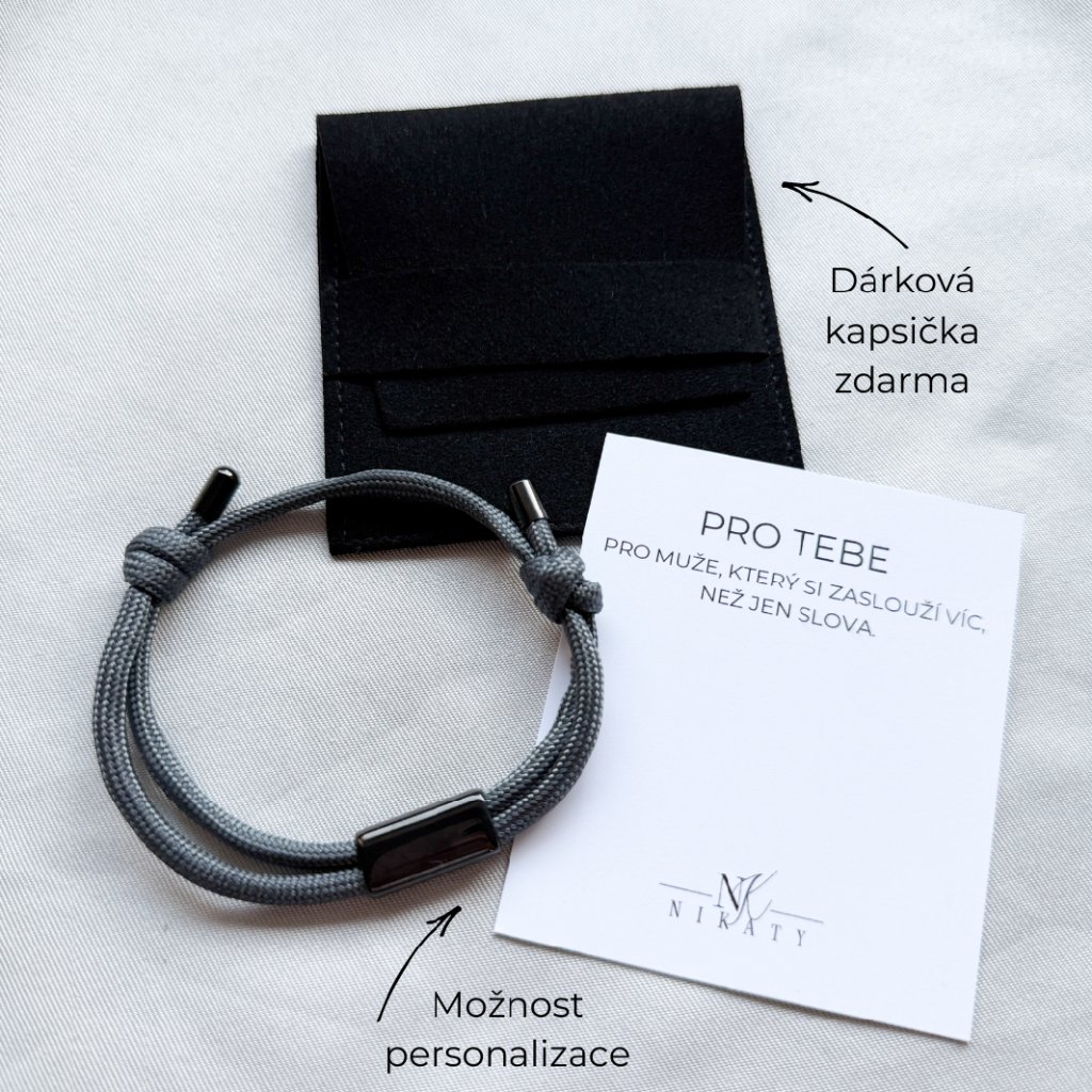Součástí balení je navíc ZDARMA dárková karta a elegantní pánské balení, díky kterému je náramek perfektním dárkem k narozeninám, výročí nebo jen tak.