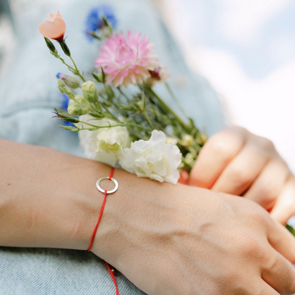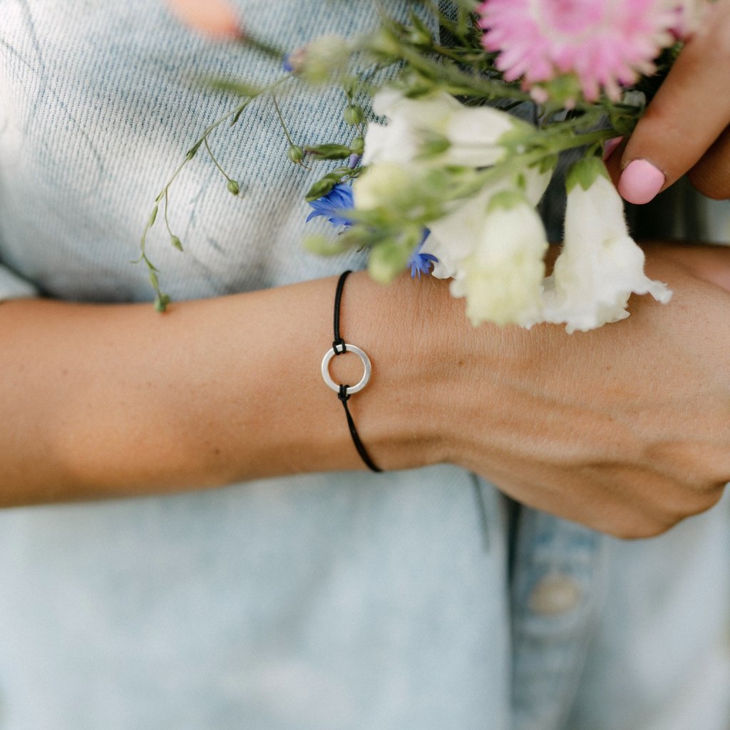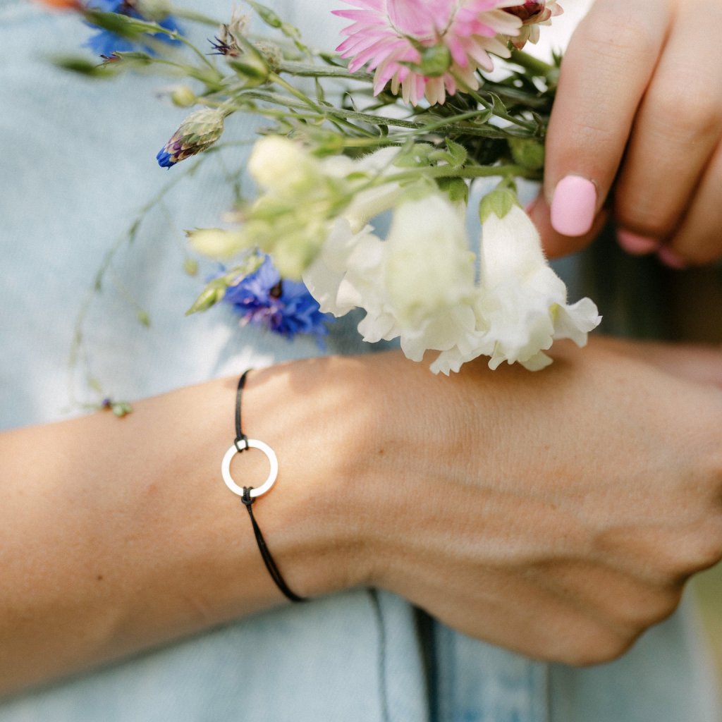 Provázkový náramek v kombinaci s karma kroužkem vytváří moderní, ale přitom nadčasový šperk, který lze nosit při každé příležitosti. Díky snadnému nastavení velikosti náramek perfektně padne na každé zápěstí, což z něj činí ideální dárek pro každého.