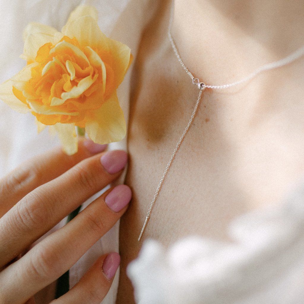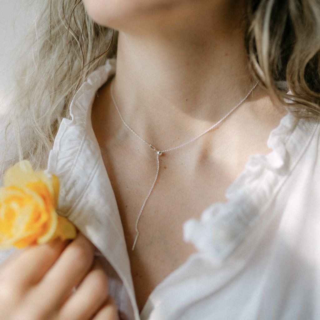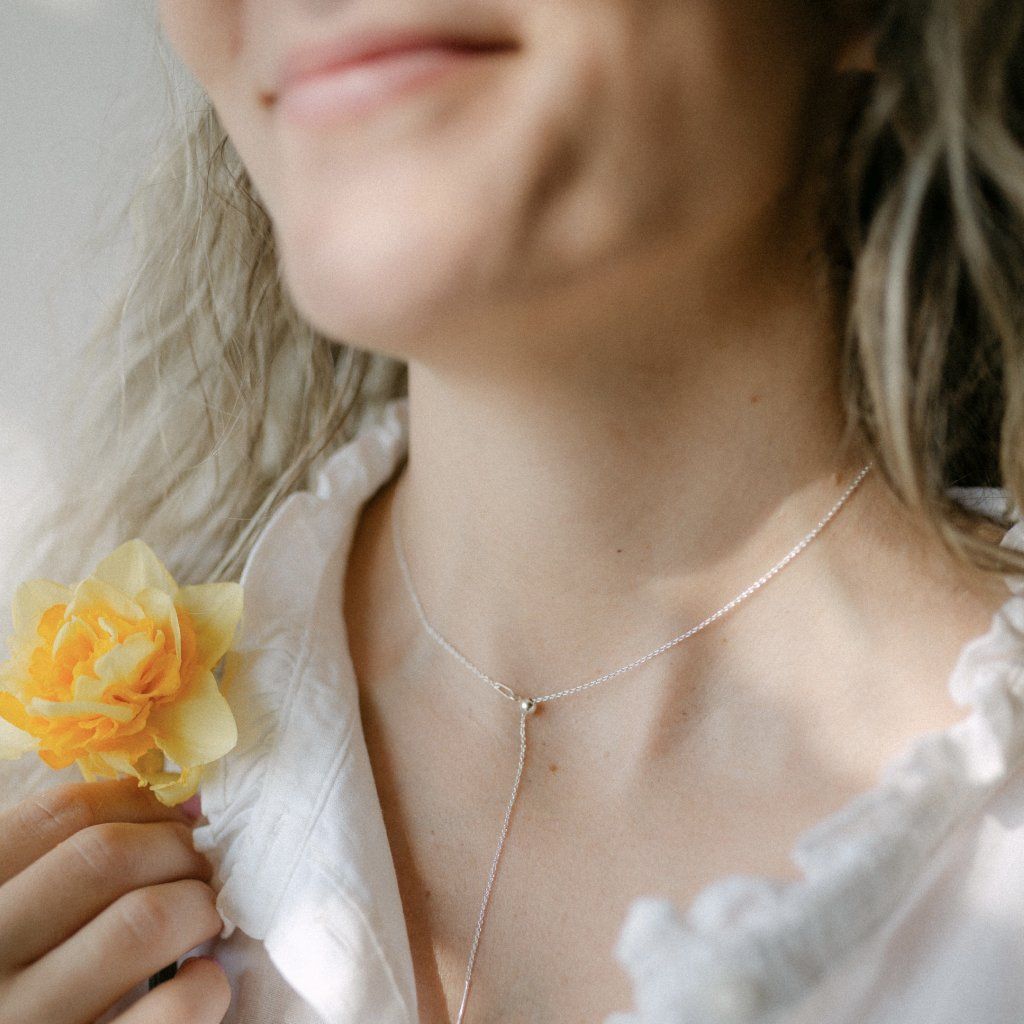 Minimalistický a elegantní, náhrdelník se zapíná provlečením malou stříbrnou kuličkou. Jednoduchý, nadčasový design zdůrazňuje lehkost a jemnost, díky čemuž se stává dokonalým doplňkem pro každý den i speciální příležitosti.