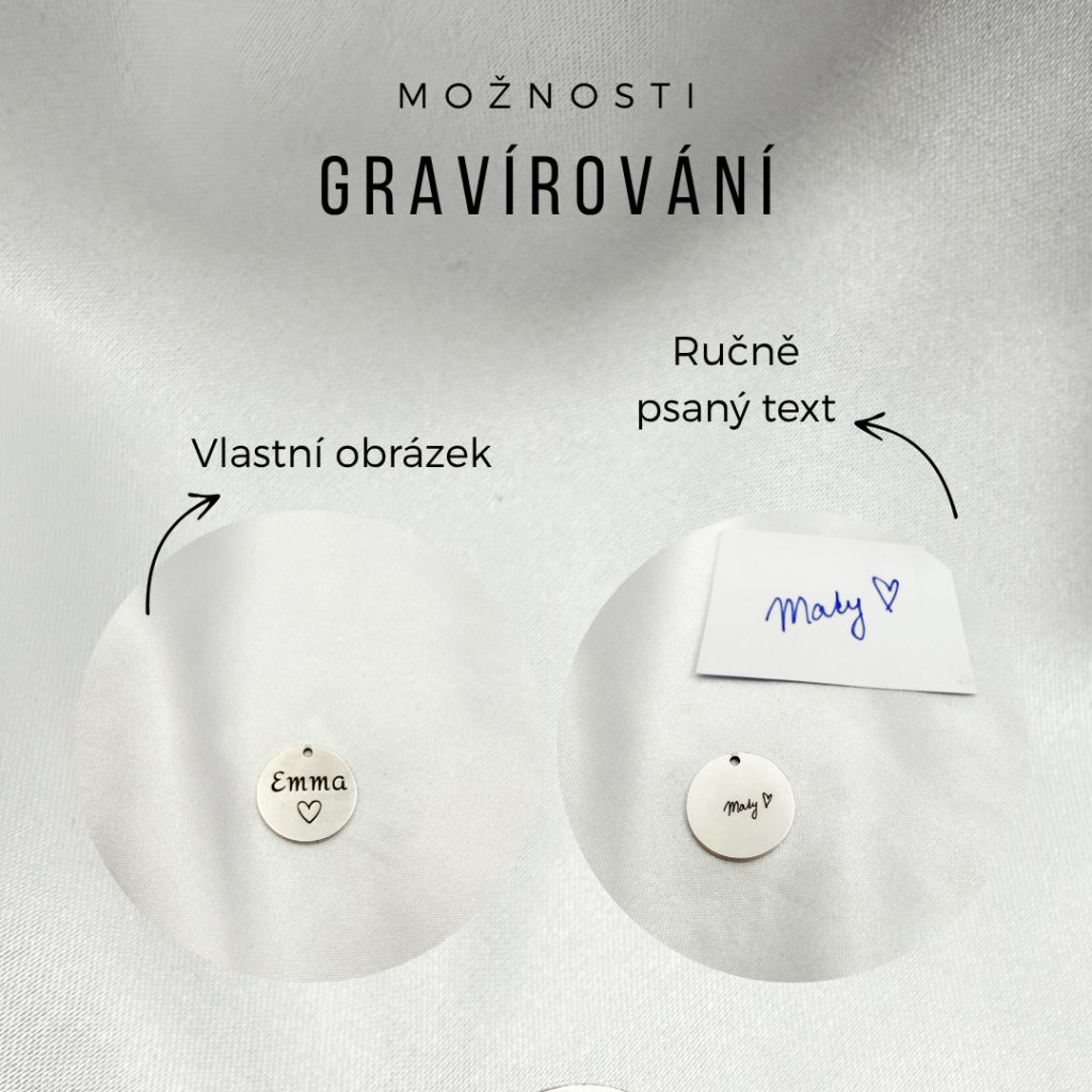 Na medailon lze vygravírovat až 2 řádky textu (např. iniciály, datum, krátký vzkaz).