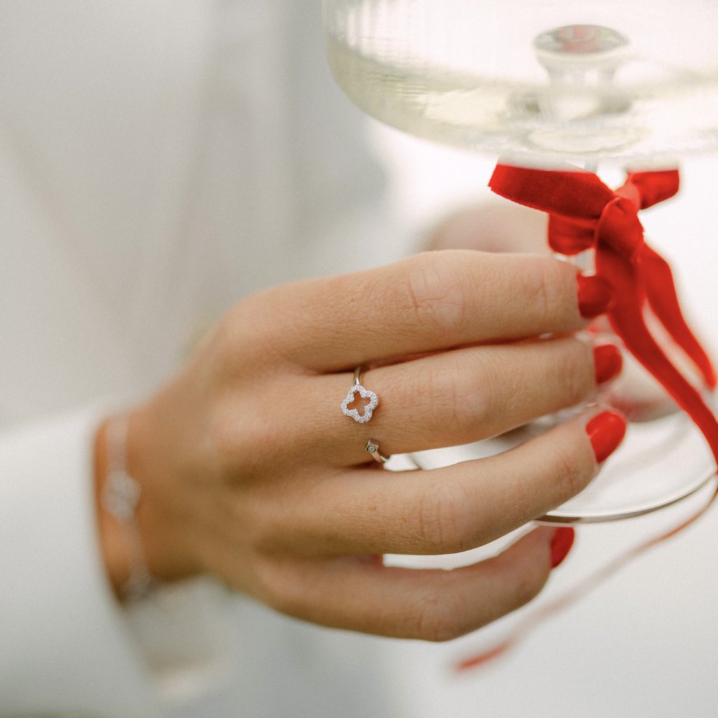 Tip: Otevřený prsten s čtyřlístkem se skvěle kombinuje s náhrdelníkem, náramkem a náušnicemi ze stejné kolekce. Společně vytvoří elegantní, třpytivý set, který podtrhne váš styl a dodá outfitu jemný a harmonický vzhled.