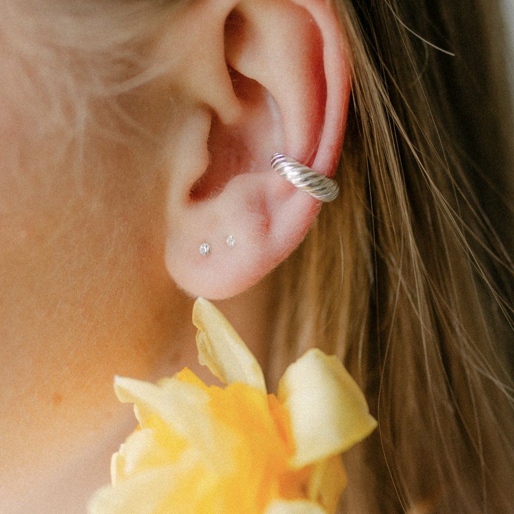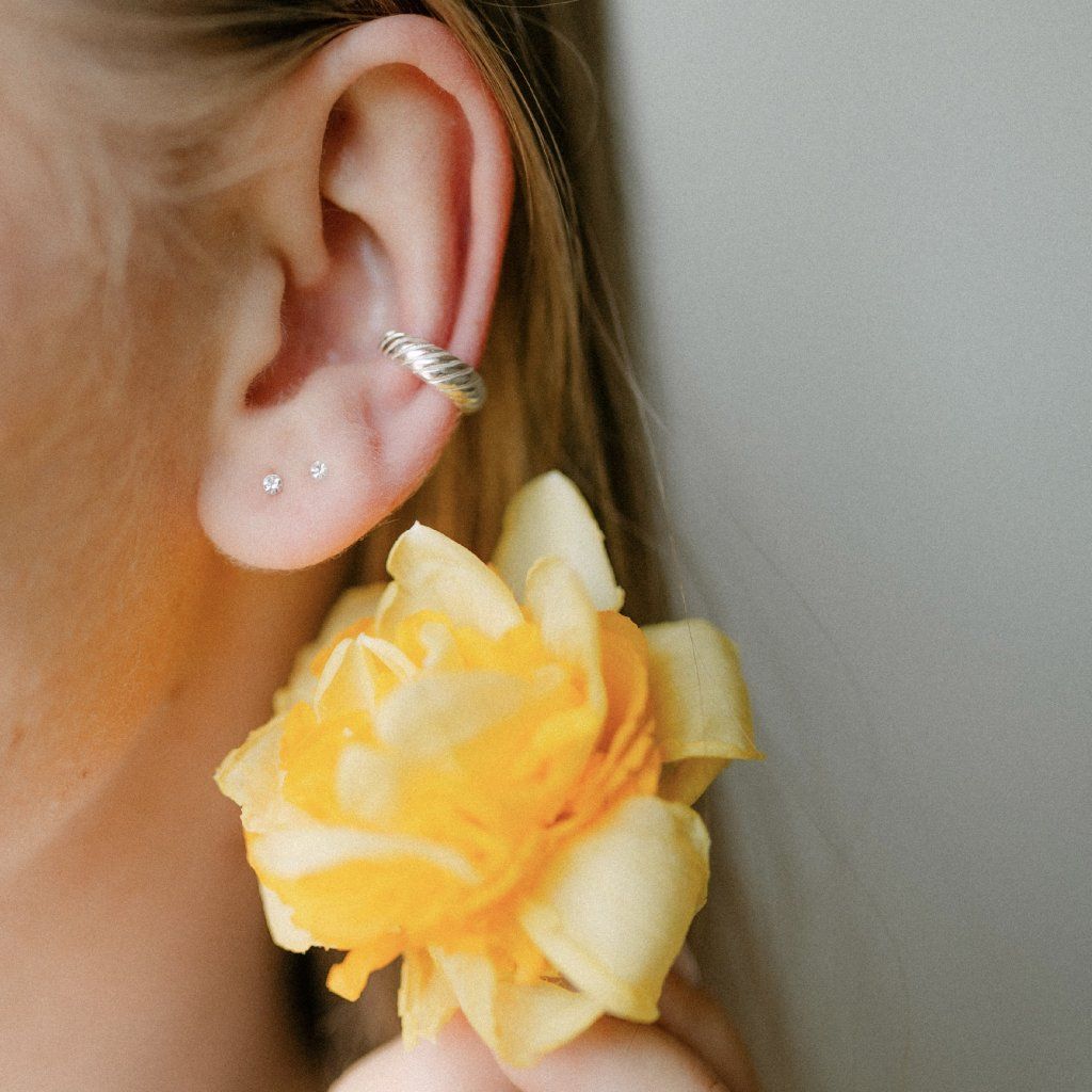 Záušnice Souznění zaujmou svým jedinečným, zatočeným tvarem připomínajícím jemný croissant. Tento organický, zakřivený tvar symbolizuje pohyb, rovnováhu a propojení – připomínku, že vše v životě spolu souzní.